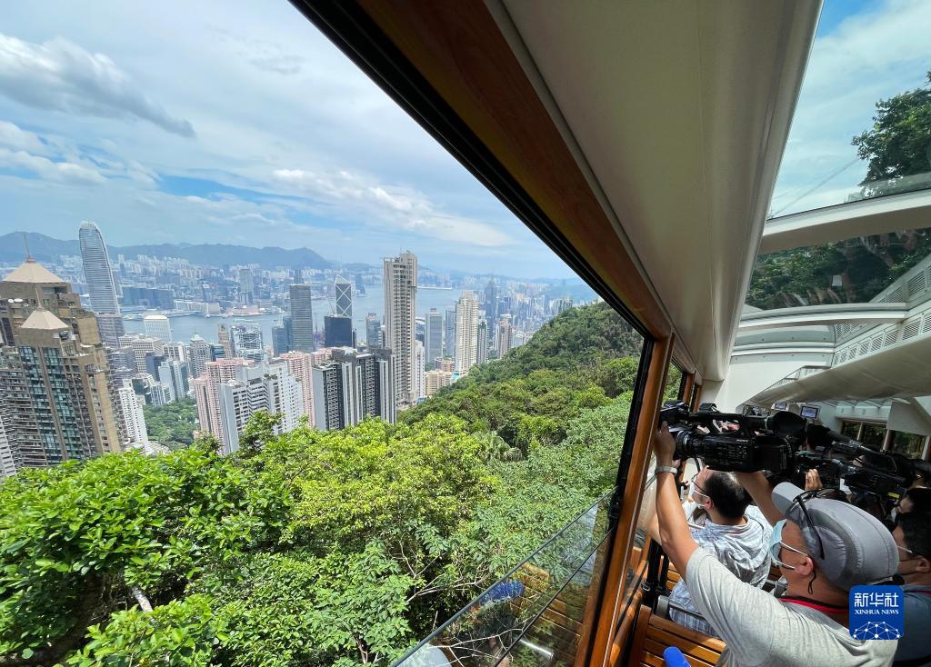 8月24日,媒体记者试乘香港第六代山顶缆车。新华社记者 李钢 摄