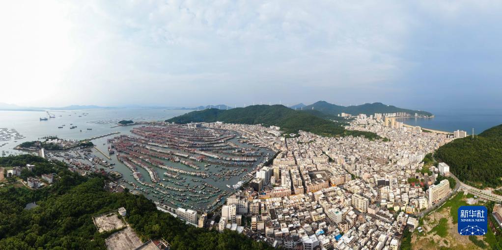 8月24日,在广东阳江市海陵岛闸坡国家级中心渔港,停满了归港避风的渔船(无人机照片)。