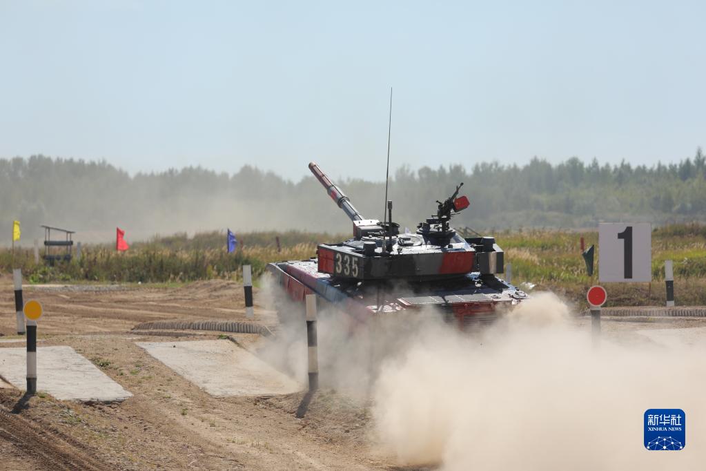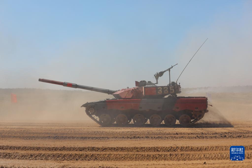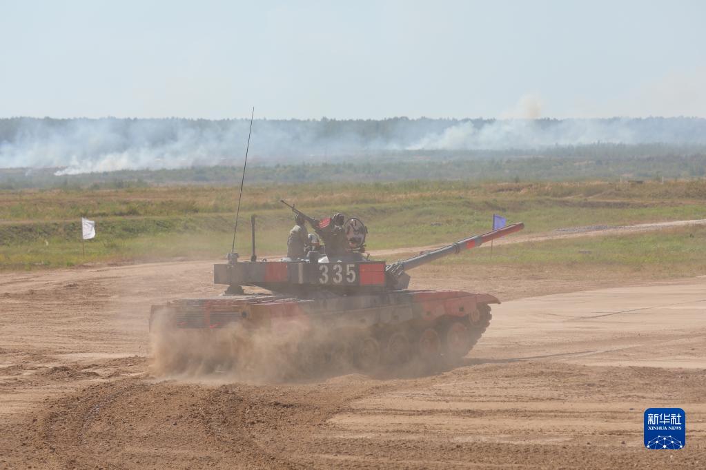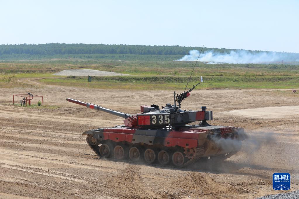 8月24日,在俄罗斯莫斯科州阿拉比诺靶场,中国参赛队96B坦克在比赛中。新华社发(罗坤摄)