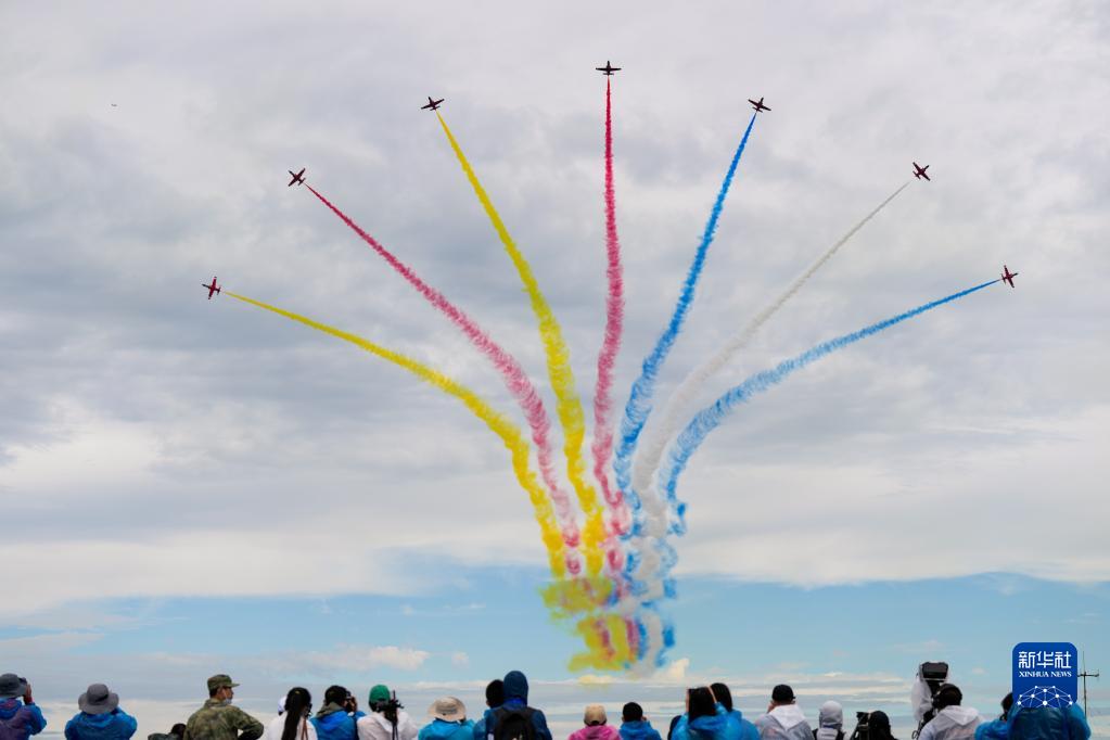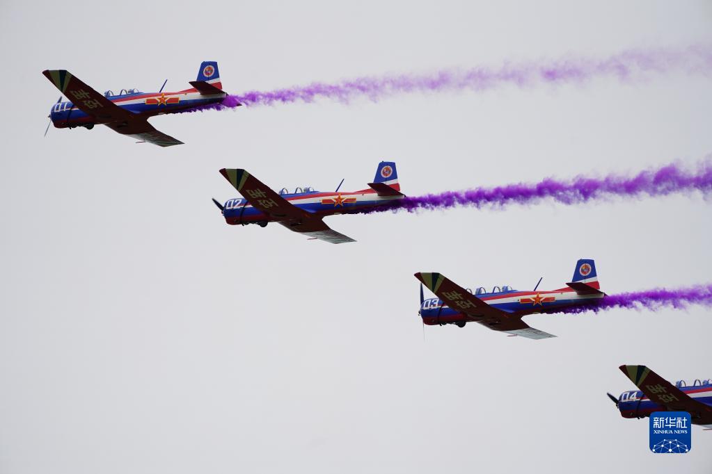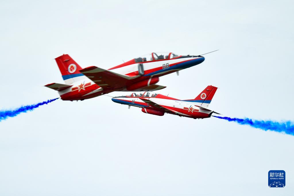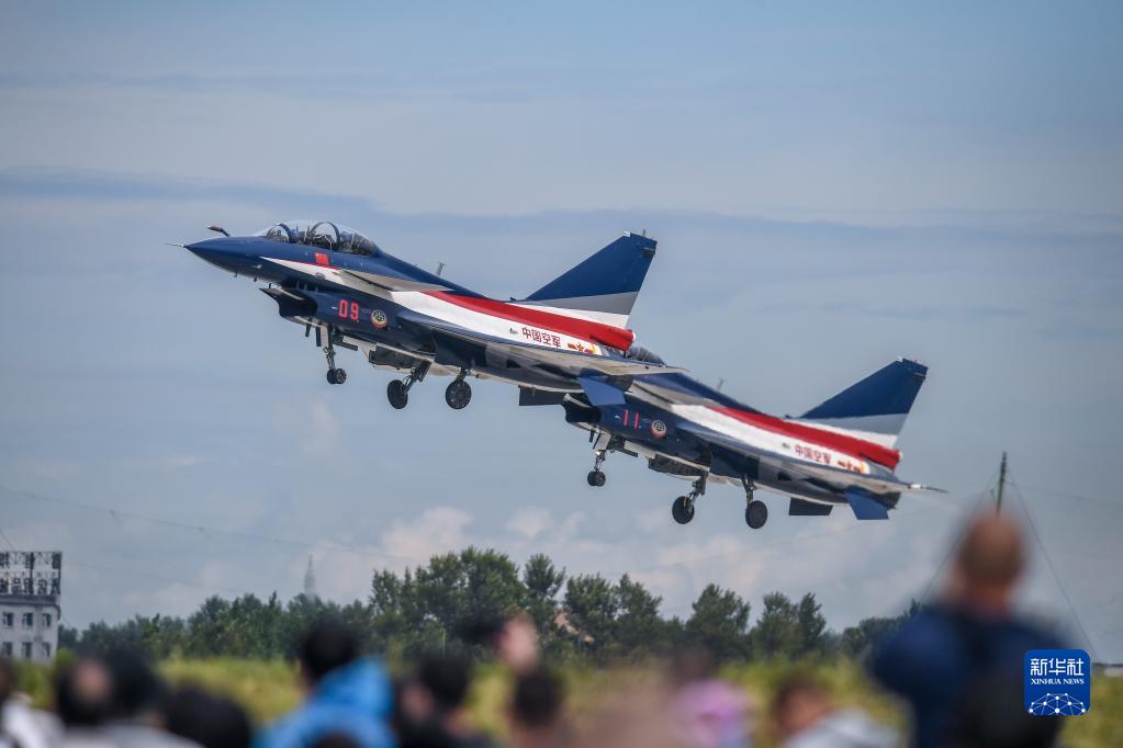 8月26日,在空军航空开放活动暨长春航空展上,中国空军“八一”飞行表演队进行飞行表演。新华社记者 张楠 摄