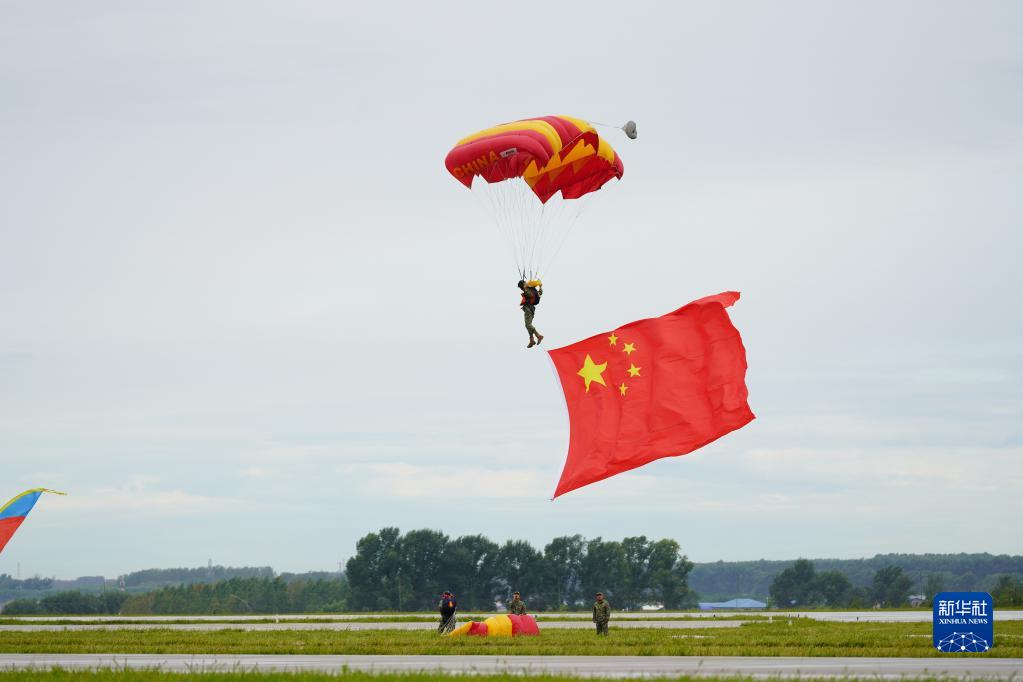 8月26日,在空军航空开放活动暨长春航空展上,八一跳伞队进行跳伞表演。新华社发(时旭琛 摄)
