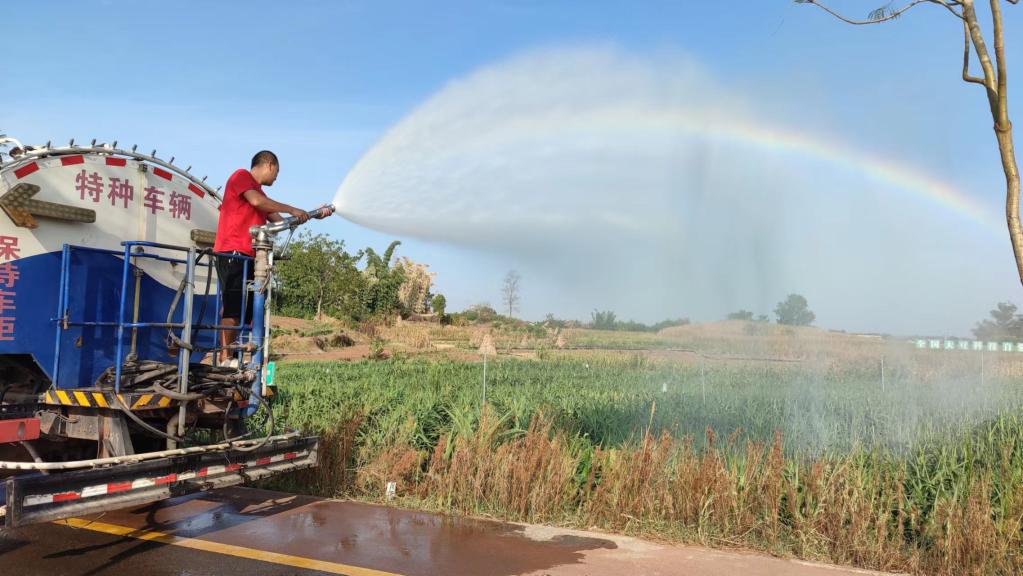在四川自贡市富顺县代寺镇李子村稻粮基地,村产业干部何状元近期每天早出晚归。“园区3000亩高粱、大豆、再生稻都比较缺水,我们每天一早一晚对农作物进行浇水灌溉。”他告诉记者,喷出的水带有雾化效果,可以节约用水。富顺县农业农村局局长邱明贵说:“全县千方百计抗旱保苗,包括找水源、提水,基本解决了再生稻、再生高粱、夏大豆、柑橘等用水,努力降低旱情对粮食生产、经济作物、水产品和畜牧业等的影响。”