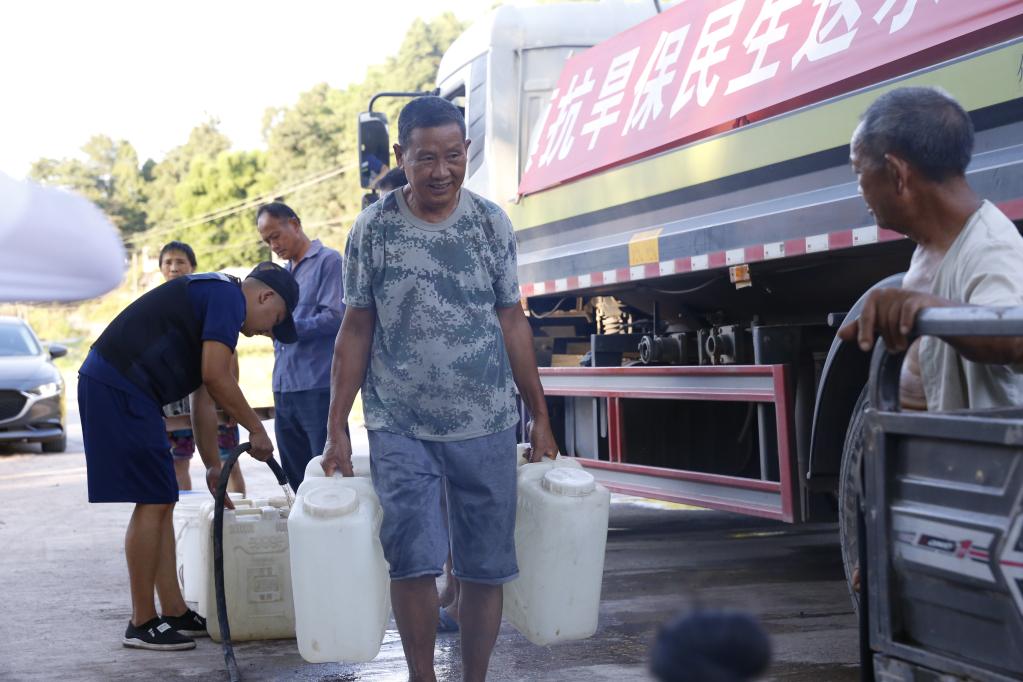 四川省宜宾市高县复兴镇应急救援队为缺水群众送水。新华社记者袁波 摄