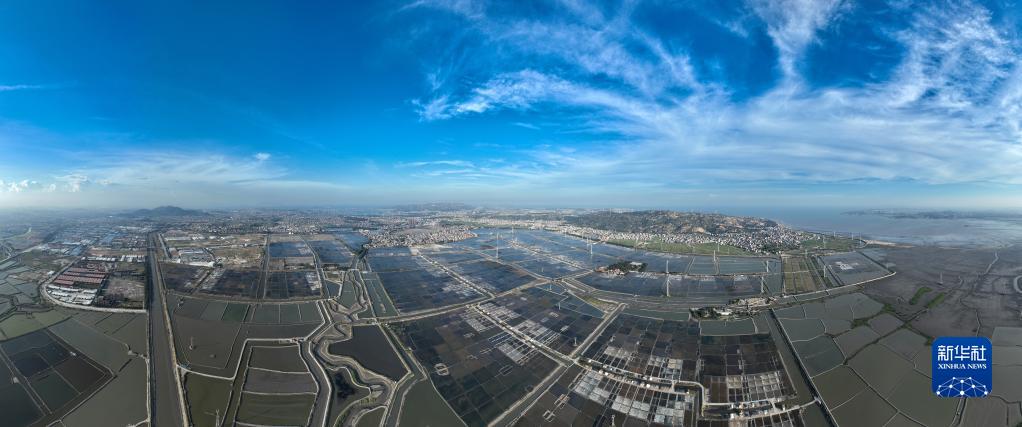这是8月26日拍摄的位于福建省莆田市秀屿区东峤镇的莆田盐场(无人机合成照片)。