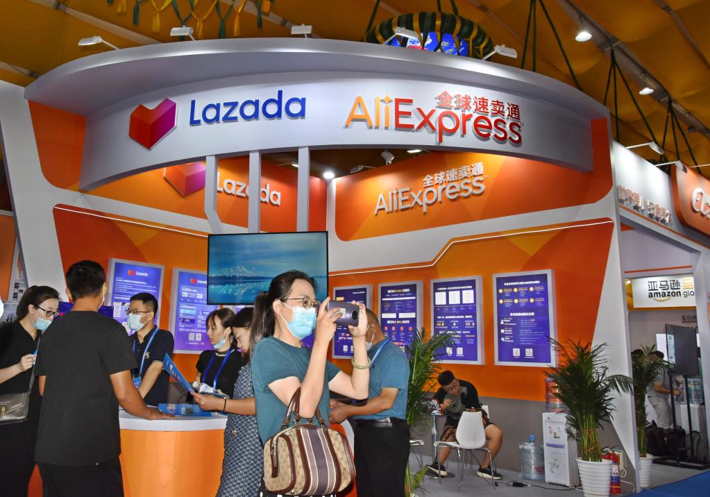8月26日,以“梦起黄河 同心共赢”为主题的2022年黄河流域跨境电商博览会在青岛开幕。图为一家跨境电子商务企业在博览会上推介。新华社记者 李紫恒 摄