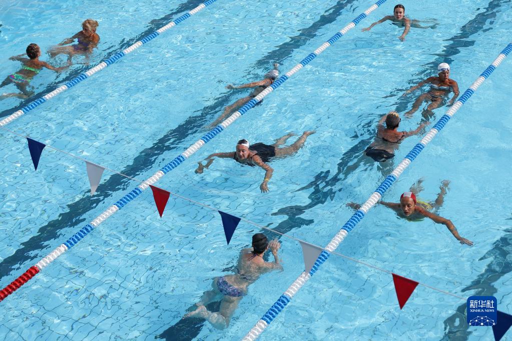 8月25日,人们在俄罗斯莫斯科的露天游泳池游泳。