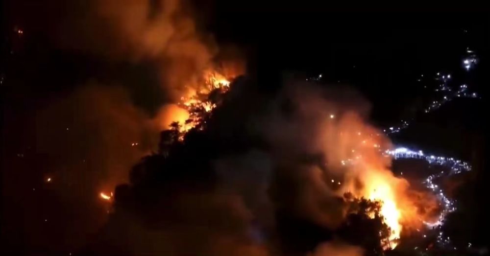 8月25日晚,重庆市北碚区缙云山的山火现场。受访者供图
