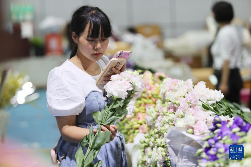 8月27日夜,游客在昆明斗南花卉交易市场选购鲜花。
