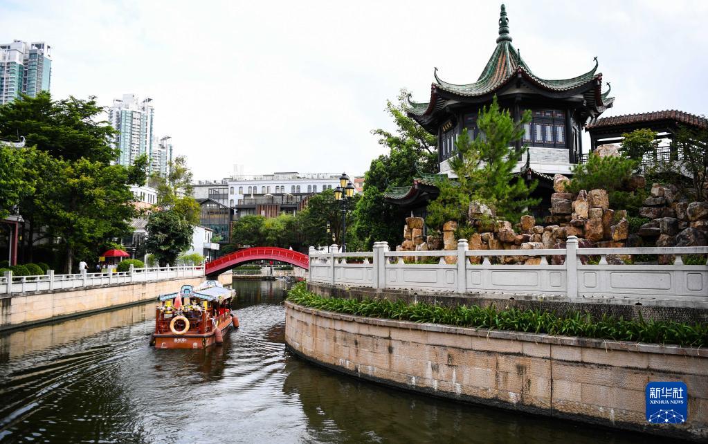 2022年7月19日,游船在广州永庆坊河道内穿行。