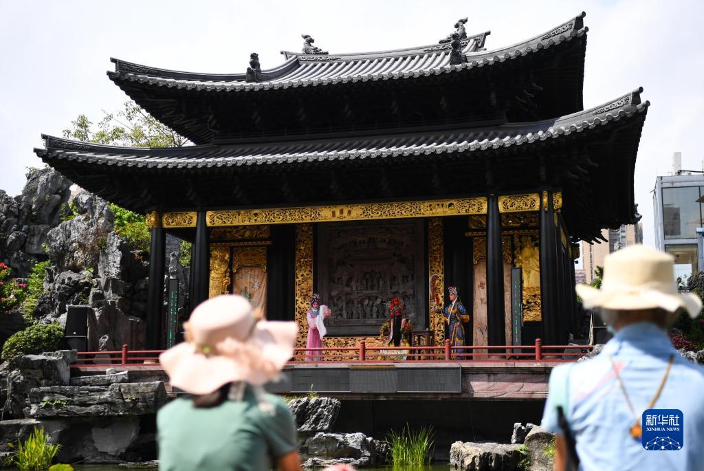 2022年8月21日,在位于广州永庆坊的粤剧艺术博物馆,游客观看粤剧表演。