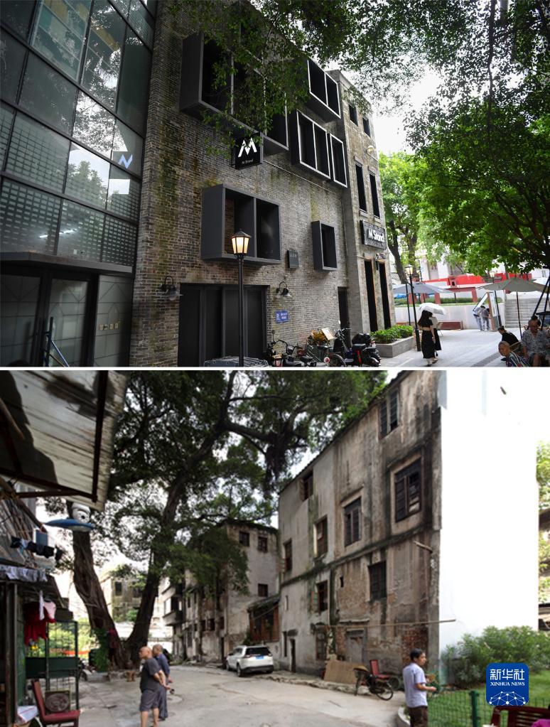 这是一张拼版照片:上图为2022年7月19日在广州永庆坊拍摄的一栋建筑(新华社记者 邓华 摄);下图为2015年拍摄的同一栋建筑(广州市荔湾区住房建设和园林局供图)。