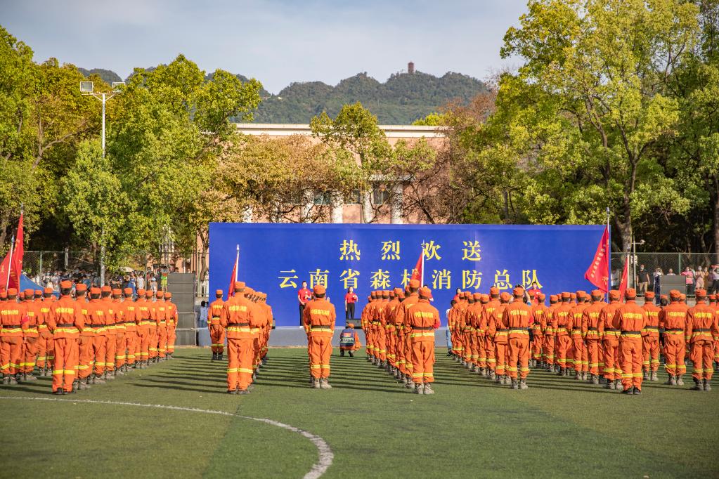 新华社重庆8月28日电(记者周闻韬、朱高祥)28日清晨,位于重庆市北碚区的西南大学第三运动场上,300多名云南森林消防队员整齐列队。在取得森林灭火的阶段性胜利后,他们即将启程返回驻地。