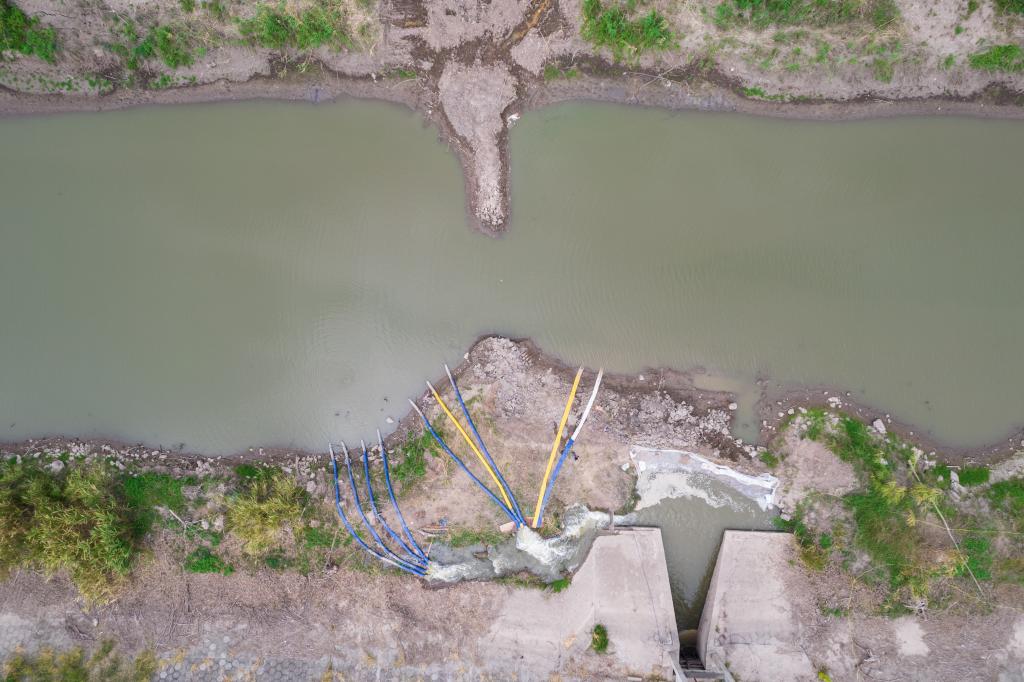 记者见到周刚时,他正在罗洲电排指导村民提灌。4位村民在取水口不停调整水管位置,周刚则在岸边时刻根据情况变化操作控制台。周刚告诉记者,这里共有11台潜水泵在作业,每台每小时能提水260立方米,已连续作业20多天。