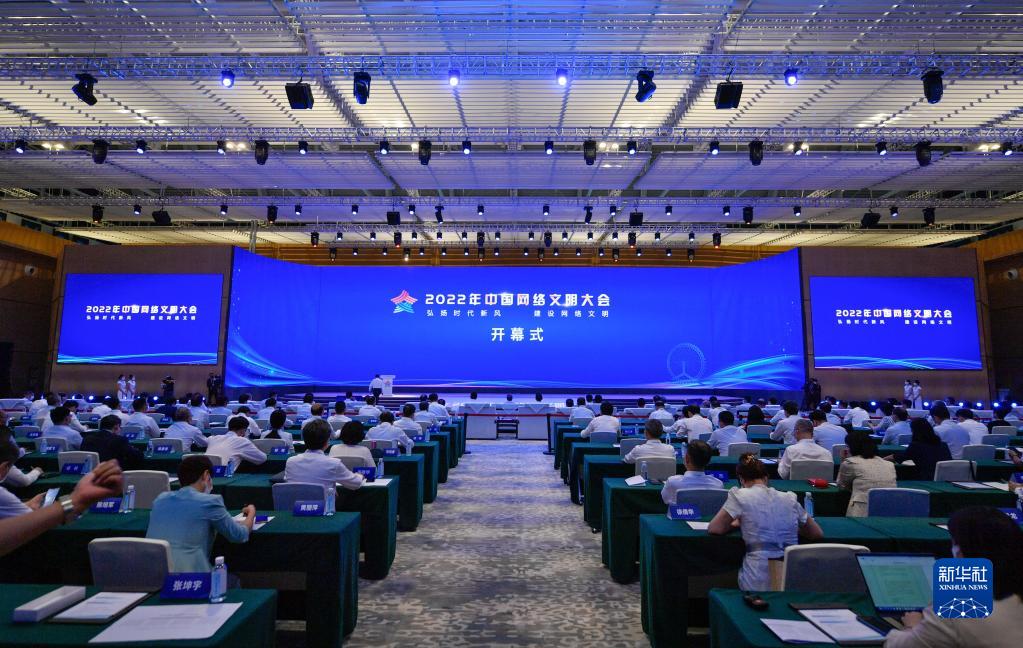 8月28日在国家会展中心(天津)拍摄的2022年中国网络文明大会开幕式现场。
