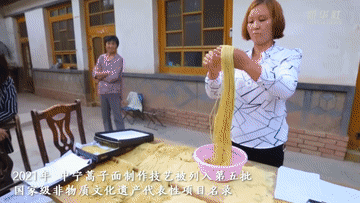宁夏中宁县地处腾格里沙漠边缘,黄河自西向东穿境而过。已有300多年历史的蒿子面是中宁县的民间特色风味小吃。2021年,中宁蒿子面制作技艺被列入第五批国家级非物质文化遗产代表性项目名录。