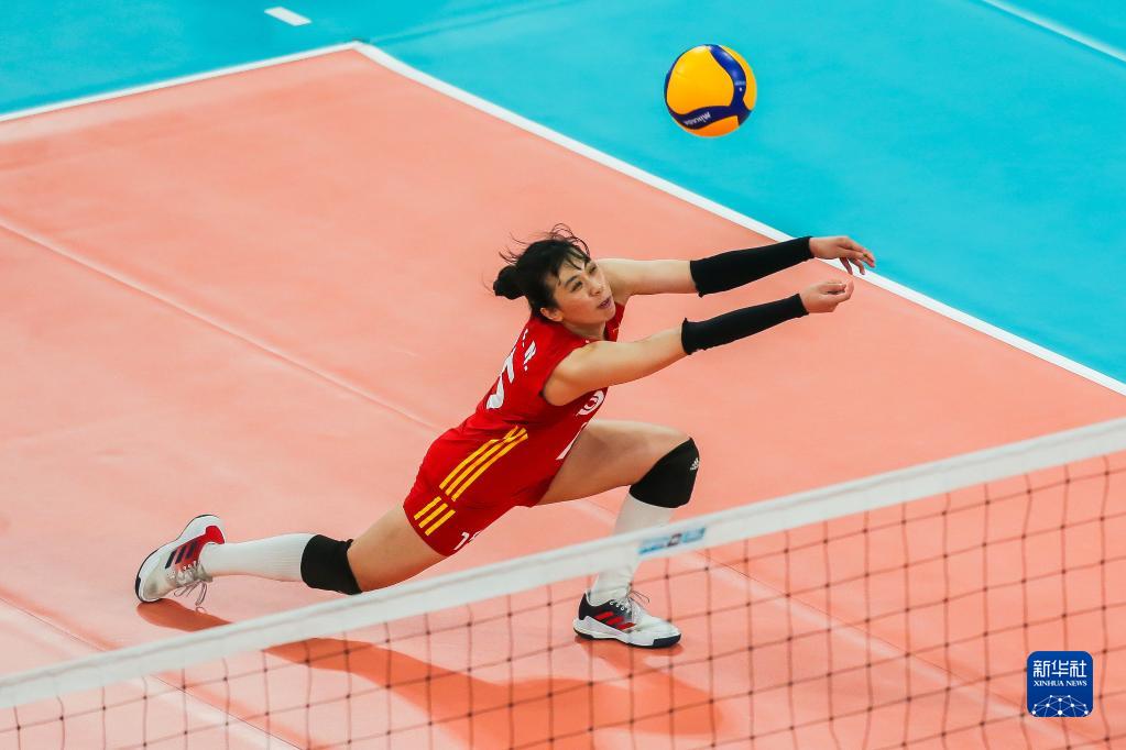 8月28日,中国队球员庄宇珊(右一)在比赛中扣球。新华社发(乌马利摄)