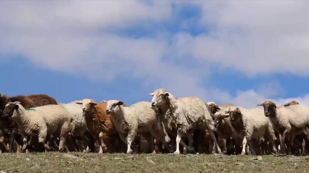 近日,新疆西部的温泉县进入牲畜秋季转场的季节。牧民们赶着成群的牛羊,穿行在山间的牧道上。