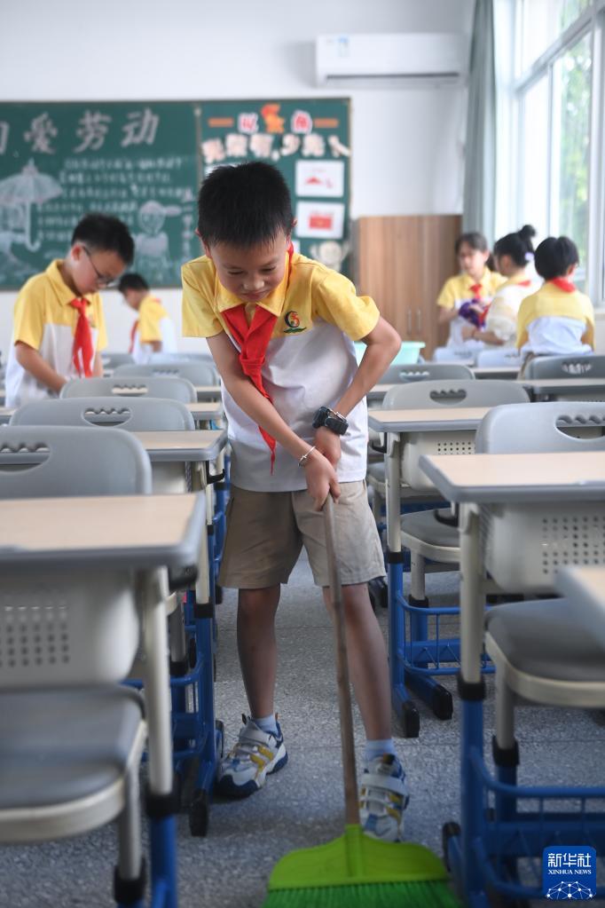 8月29日,龙泉小学的学生在打扫教室,开启新学期“开学第一课”。