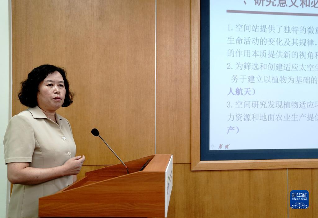 8月29日,中国科学院分子植物科学卓越创新中心郑慧琼研究员介绍中国空间站问天实验舱植物生长实验。新华社记者 张建松 摄