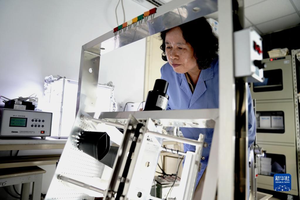 8月29日,在中国科学院分子植物科学卓越创新中心模拟微重力实验室,郑慧琼研究员观察植物生长实验情况。新华社记者 张建松 摄