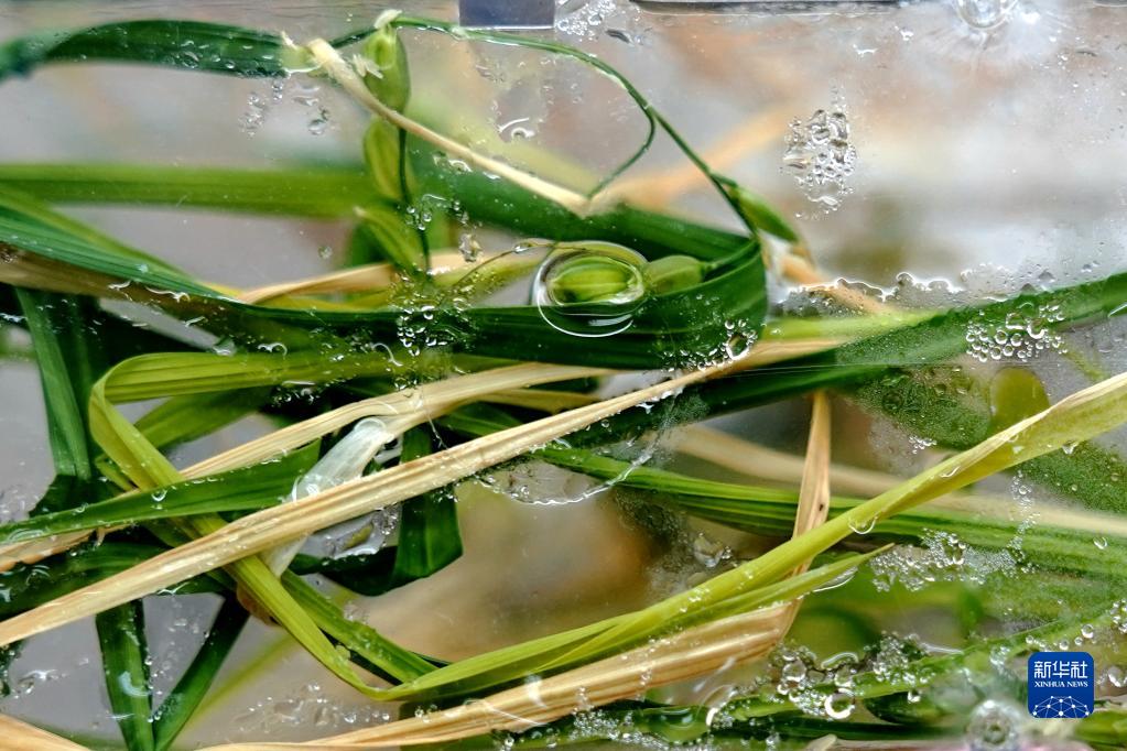 这是“太空同款”水稻培养单元中水稻生长的稻穗。新华社记者 张建松 摄