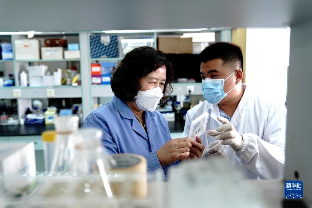 8月29日,在中国科学院分子植物科学卓越创新中心实验室,郑慧琼研究员(左)和学生观察实验结果。新华社记者 张建松 摄