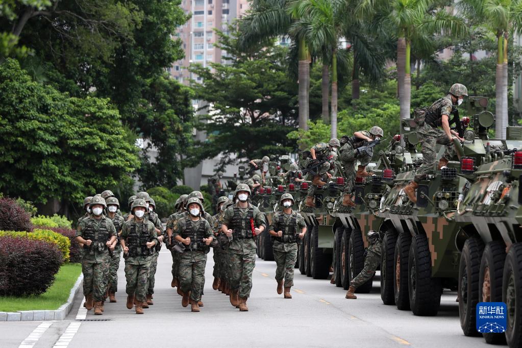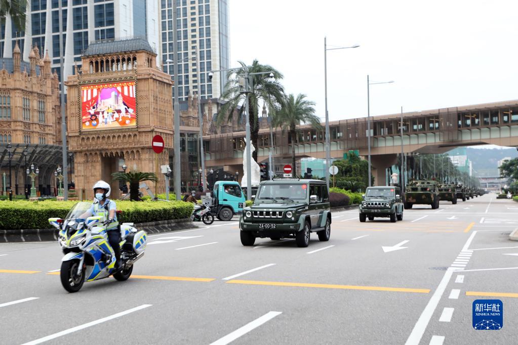 8月29日,换出官兵从澳门氹仔营区出发。新华社发(陈帅 摄)