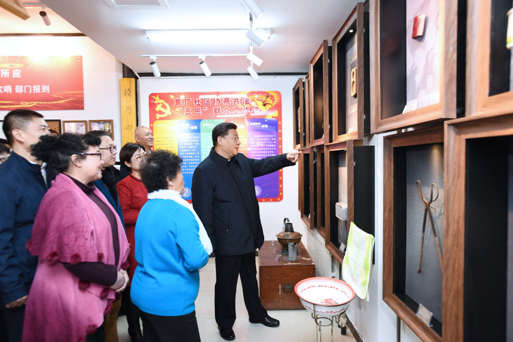 ↑2019年2月1日,习近平在北京市前门东区草厂四条“小院议事厅”同正在议事的居民亲切交谈。