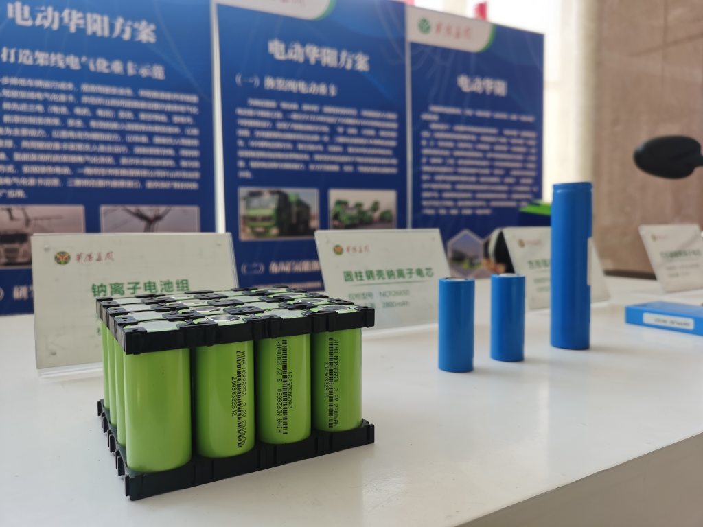 图为华阳碳谷中展出的钠离子电池。新华社记者梁晓飞 摄