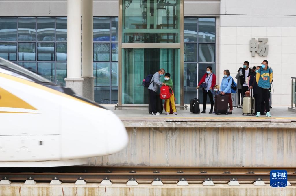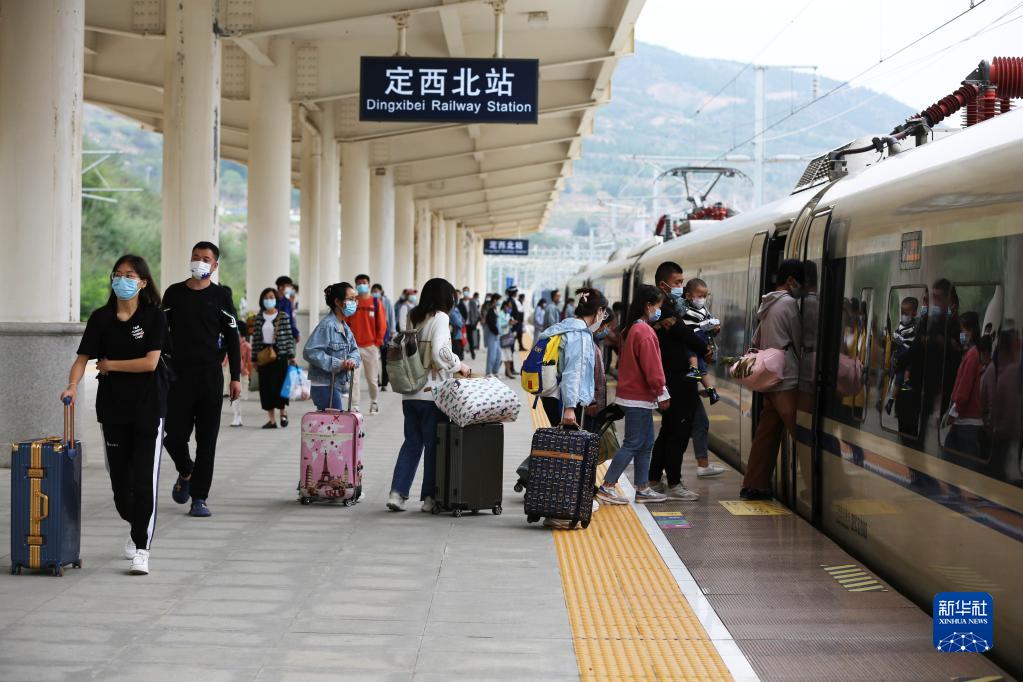8月31日,旅客在宝兰高铁定西北站站台乘车出行。当日,为期62天的全国铁路暑运结束。新华社发(王克贤 摄)