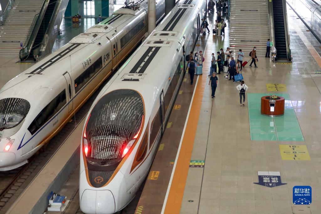 8月31日,旅客在江苏无锡火车站乘车出行。当日,为期62天的全国铁路暑运结束。新华社发(还月亮 摄)