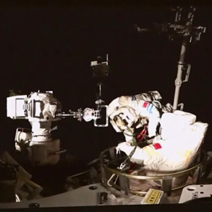 目前,两名出舱航天员已完成安装脚限位器和舱外工作台等工作,后续将在小机械臂的支持下,进行问天实验舱扩展泵组安装、问天实验舱全景相机抬升等作业,并开展舱外自主转移应急返回能力验证。期间,航天员蔡旭哲在核心舱内配合支持两名出舱航天员开展舱外操作。