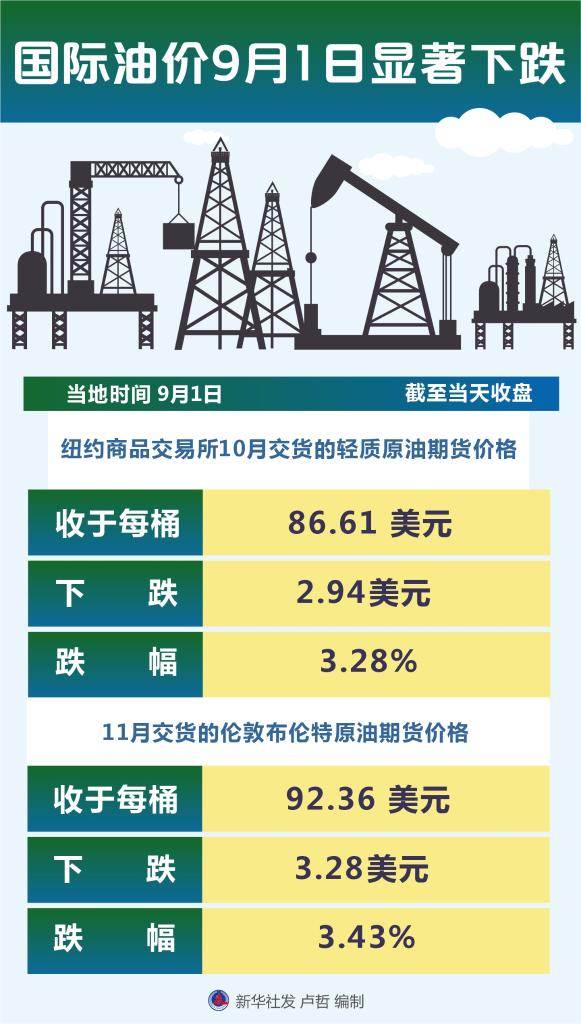 新华社纽约9月1日电(记者刘亚南)国际油价1日显著下跌。