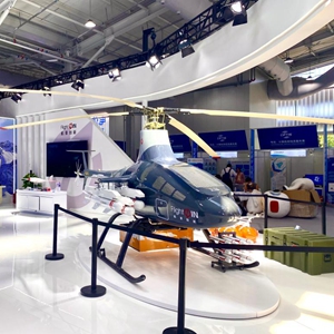 我国科技企业自主研发的无人直升机亮相服贸会。新华社记者 张漫子 摄