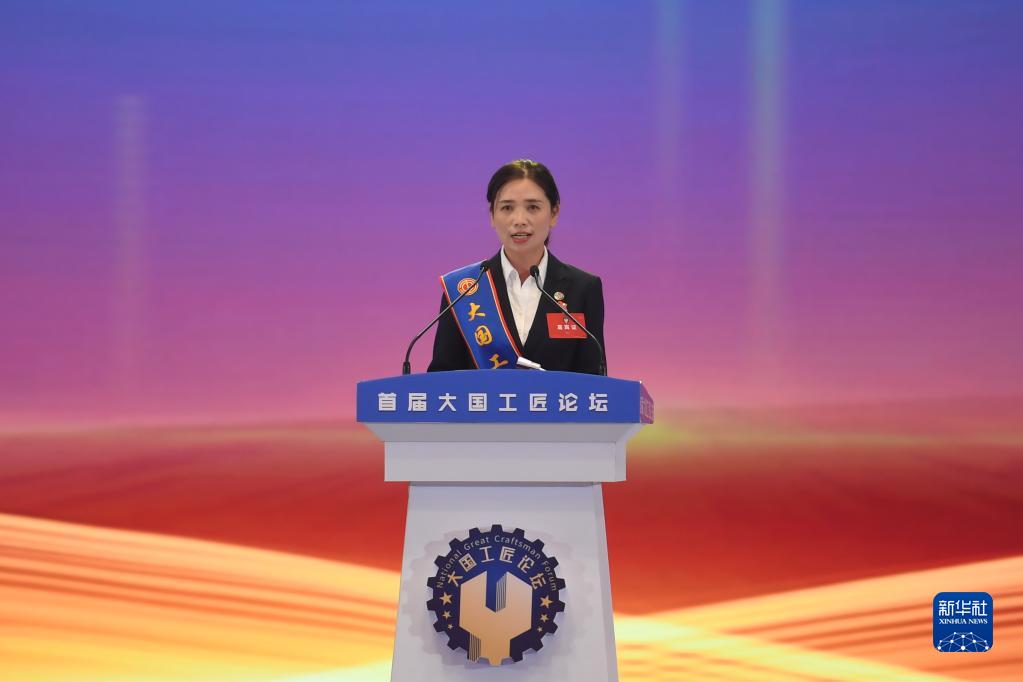 9月2日,大国工匠代表易冉在开幕式上宣读致全国各行各业工匠和技能人才倡议书。新华社记者 薛宇舸 摄