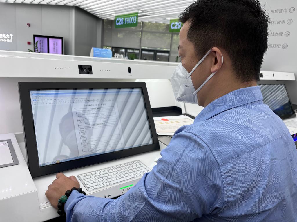 9月1日,在徐汇区行政服务中心,企业经办人用“企业码”通过自助终端完成变更申请。(受访者供图)