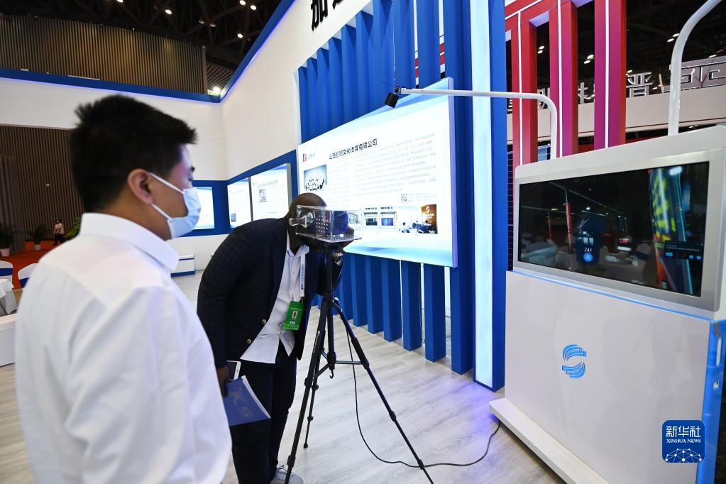 9月2日,参展商在2022中国(太原)国际能源产业博览会上体验煤矿事故灾害VR安全体验系统。新华社记者 杨晨光 摄