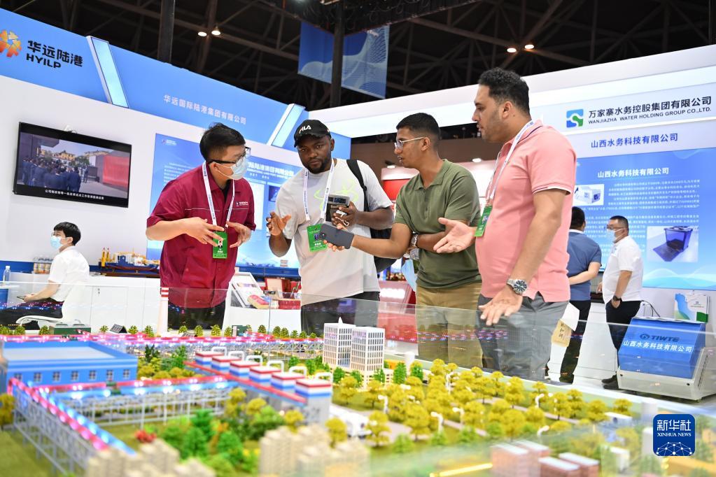 9月2日,中外参展商在2022中国(太原)国际能源产业博览会上交流。新华社记者 杨晨光 摄