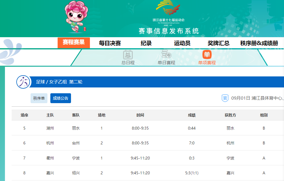 记者在浙江省第十七届省运会官网上,查到了这场比赛的成绩,丽水队44:0胜湖州队,也就是说,这场比赛是真实存在的。