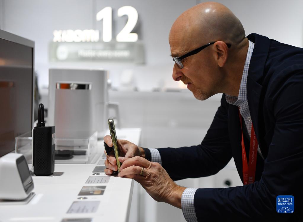 9月2日,在德国柏林国际消费电子展上,参观者在小米展区拍摄一款产品。
