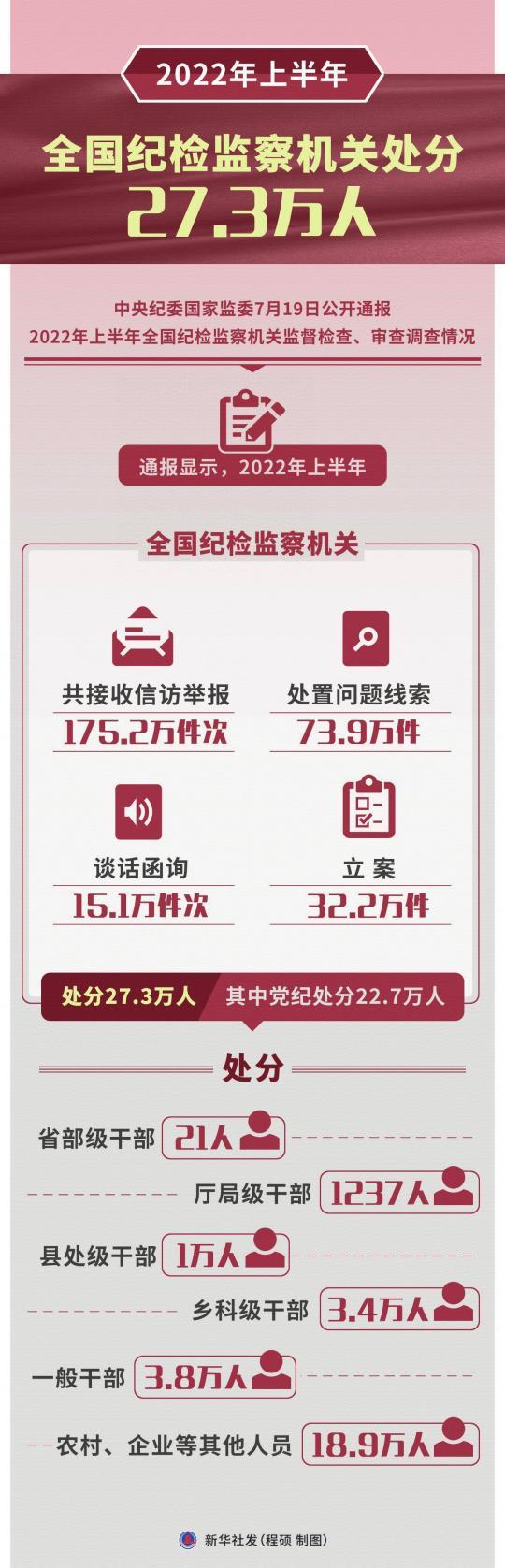 数据显示,党的十八大以来,截至2022年4月底,全国纪检监察机关共查处违反中央八项规定精神问题72.3万起,给予党纪政务处分64.4万人。