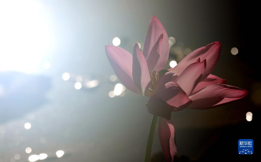 8月27日在河北省沧州市“百狮园”的荷塘里拍摄的荷花。