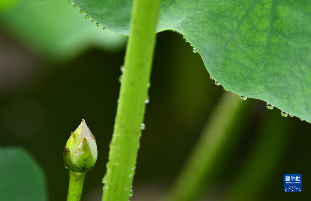 8月30日在山东省滕州市荆河公园拍摄的雨中的荷花花苞。