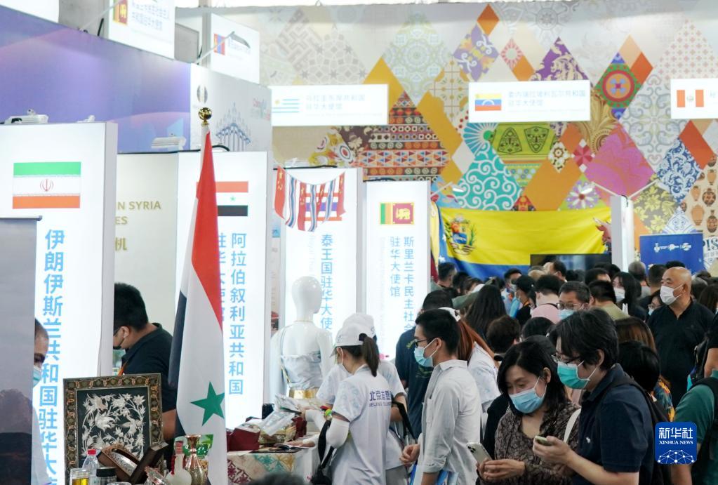 9月3日,参观者在服贸会首钢园区文旅服务专题展的“一带一路”沿线国家特色文化展示活动上参观。