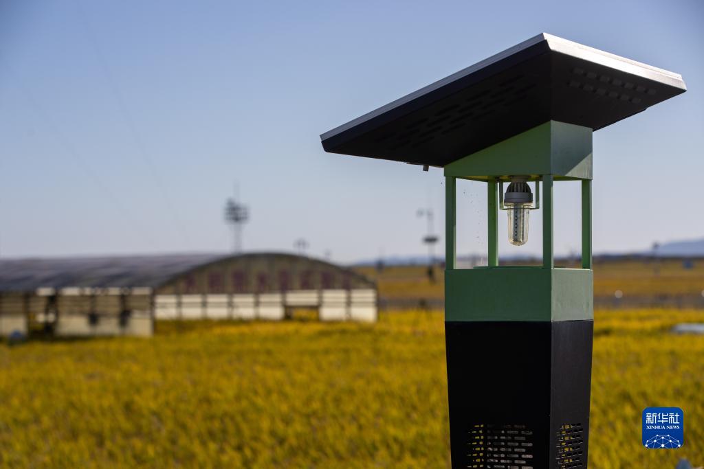 9月2日拍摄的富锦市万亩水稻科技示范园内的防虫害设备。