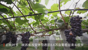 初秋时节,陕西省西安市鄠邑区6.6万亩葡萄迎来丰收季。西安市鄠邑区位于秦岭山脉北麓,自然条件优越。