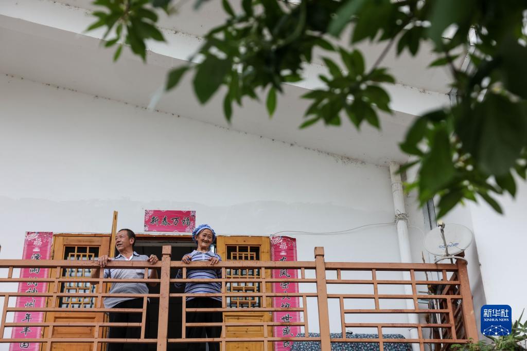 2022年7月19日,76岁的黄小妹(右)与老伴在自家阳台上休息。黄小妹家于2016年7月搬离天眼核心区迁至克度镇马鞍社区。