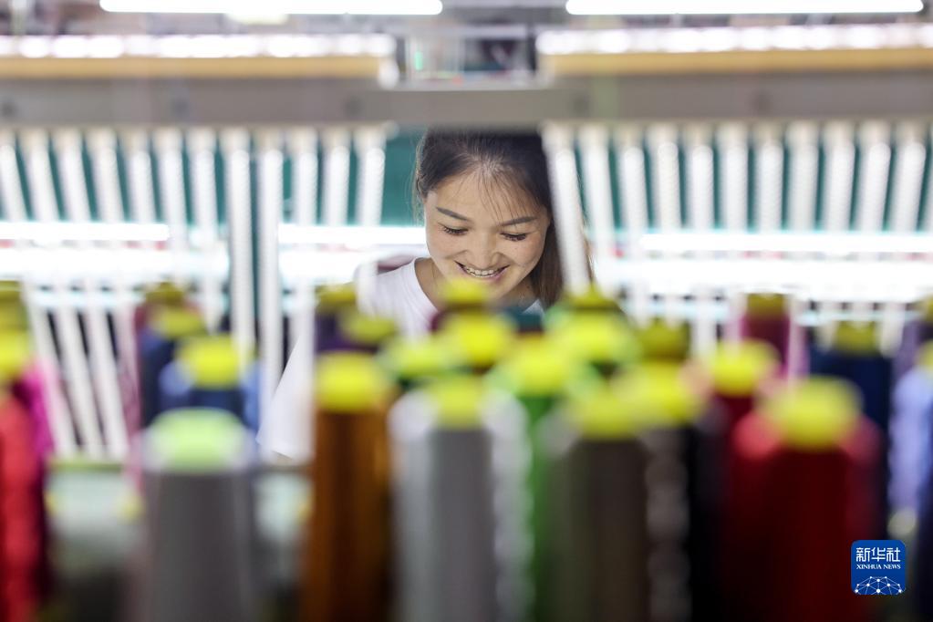 2022年7月19日,30岁的杨丽在克度镇马鞍社区一刺绣厂内工作。杨丽家是“中国天眼”所在“大窝凼”内的12户居民之一。2009年,杨丽家搬离天眼核心区迁至克度镇移民安置点。
