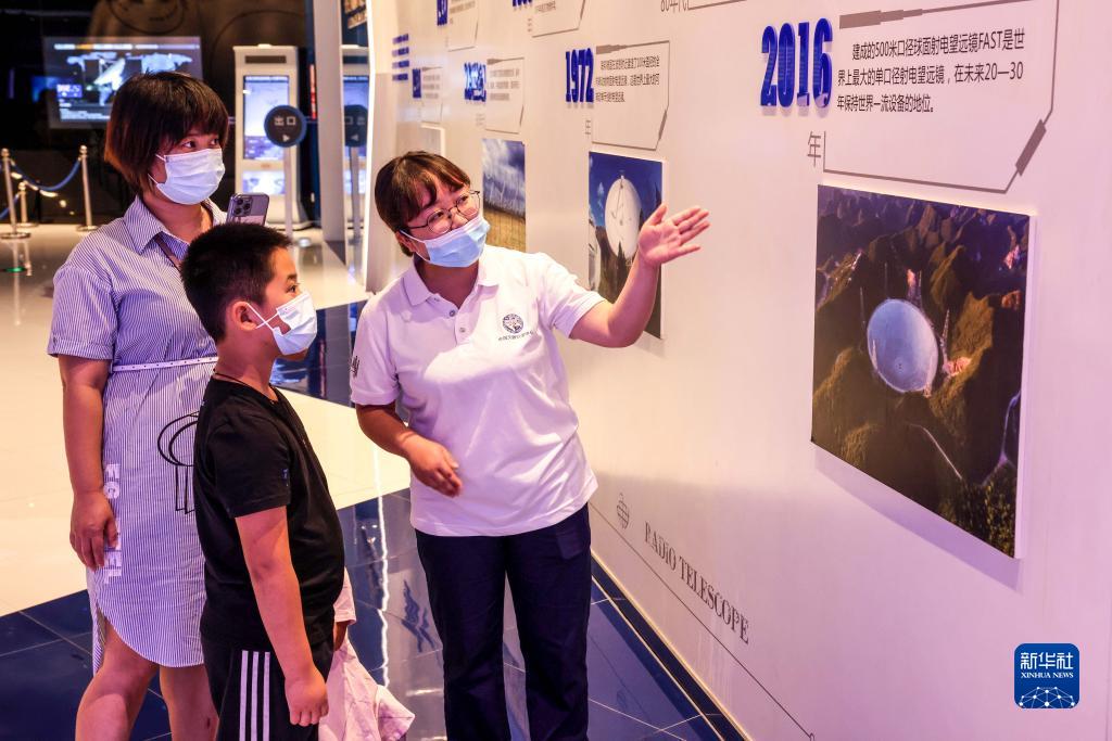 2022年7月20日,参观者在天文体验馆内参观。