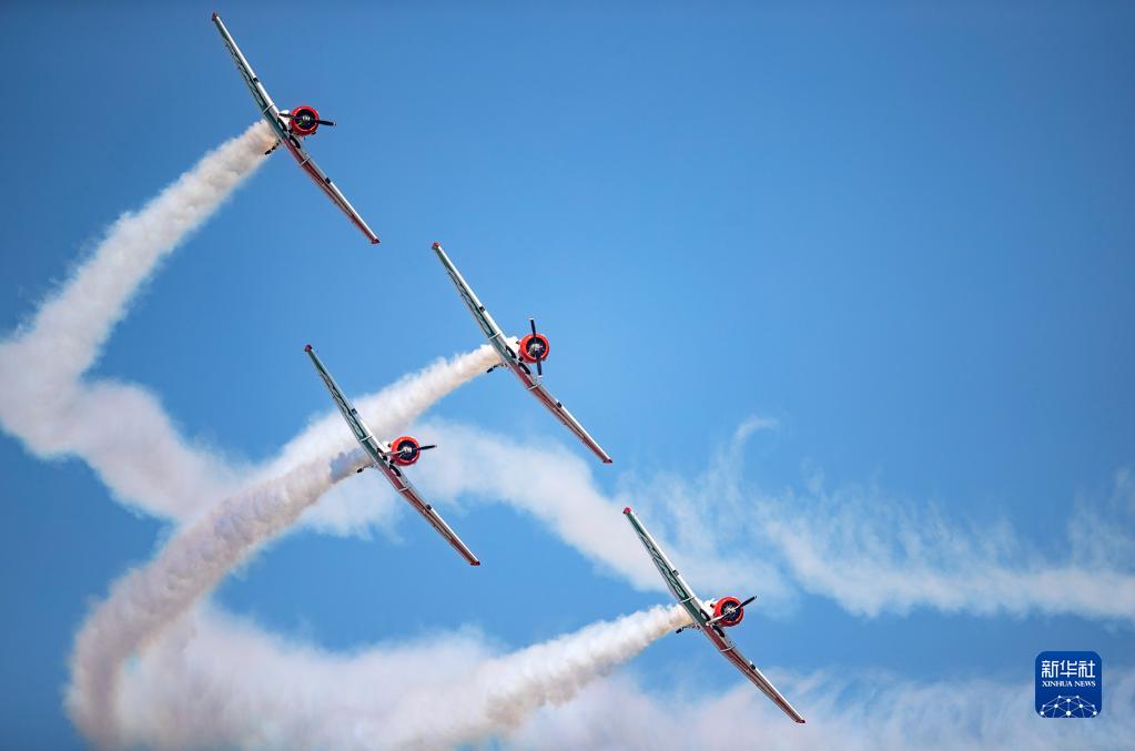 这是9月4日在南非约翰内斯堡拍摄的兰德航展上的飞行表演。
